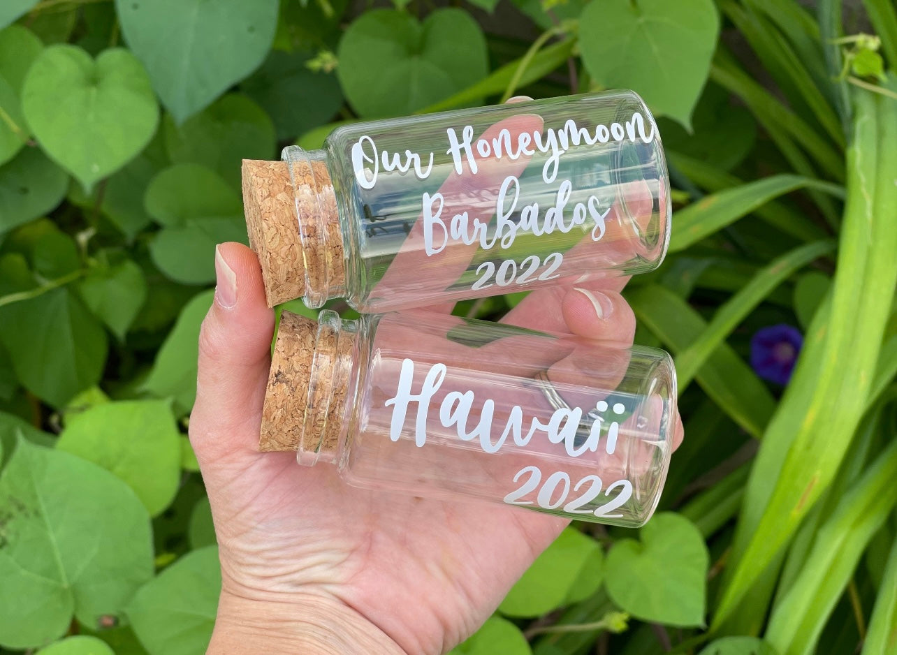 This sand jar makes the perfect addition to a honeymoon gift basket! Give it to the bride and groom to take on their special get away, or grab for yourself to bring on your next beach trip!! Add details at check out.